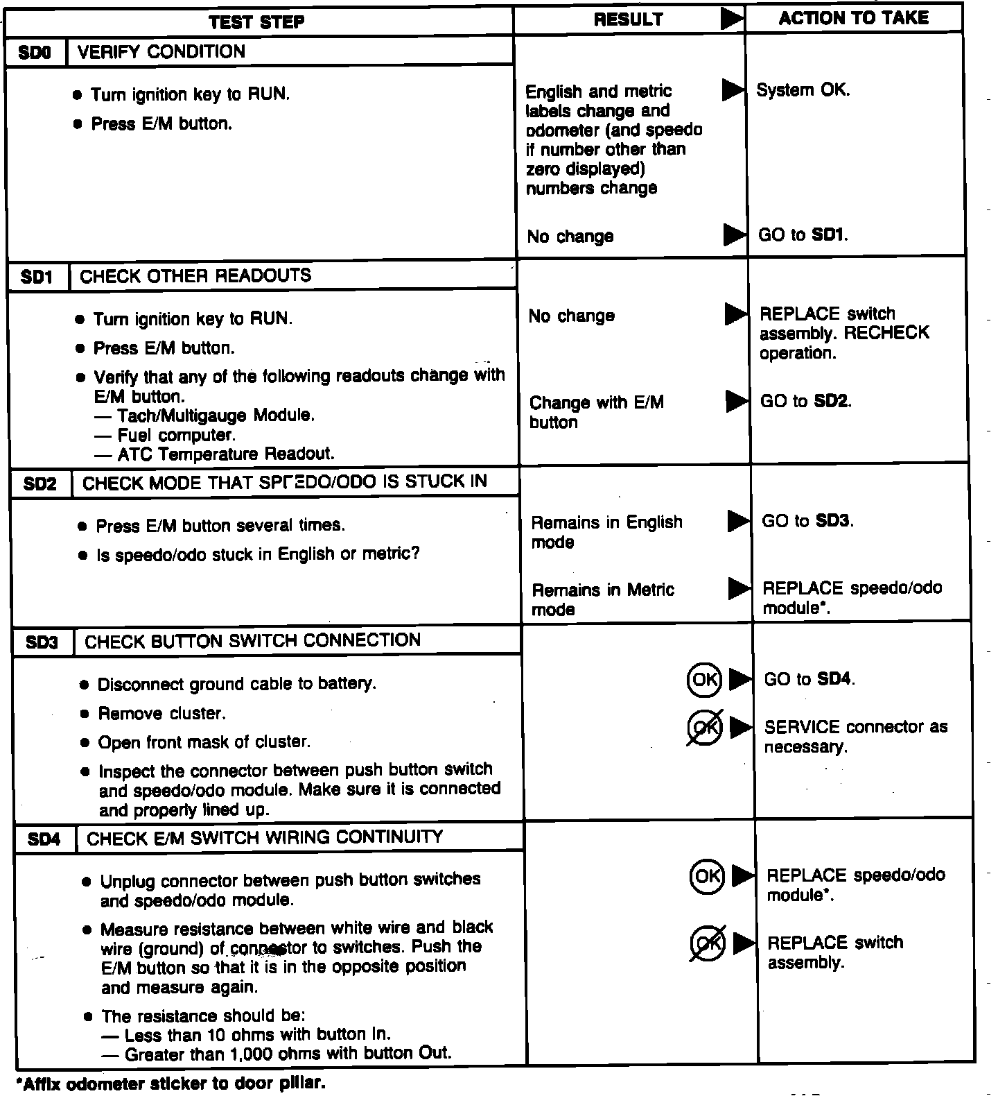 SD: Speedo/Odo Will Not Switch Between E/M
