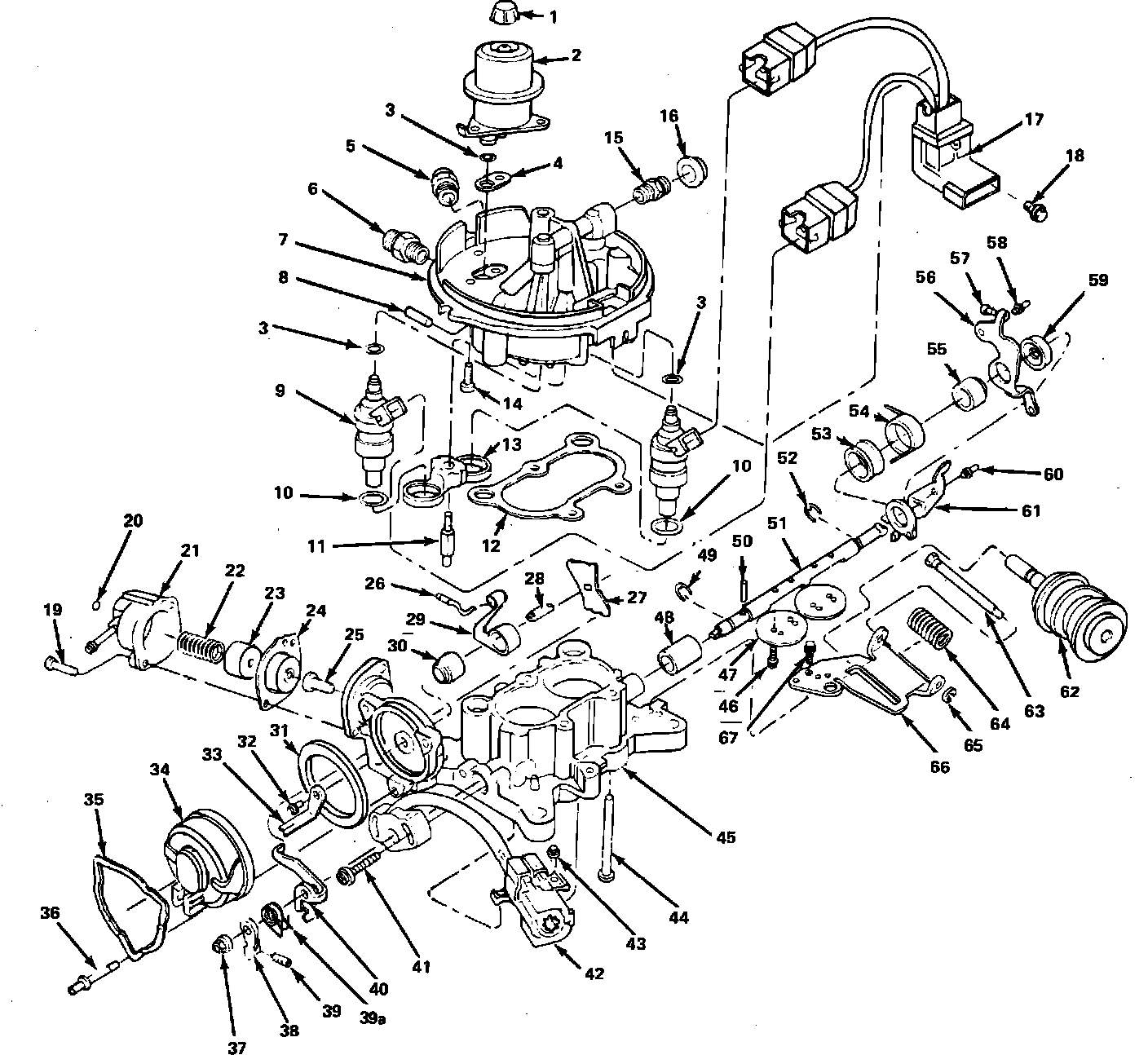 15. Remove throttle positioner retaining screw (67) and throttle positioner assembly.