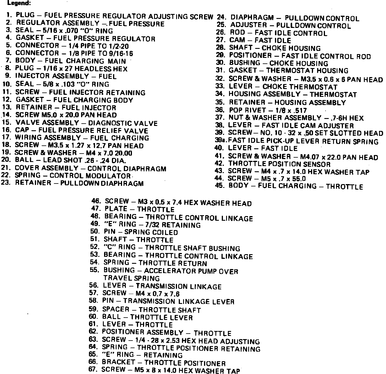 Fig. 15b Fuel charging assembly exploded view. V8 engine units shown, V6 engine units similar: