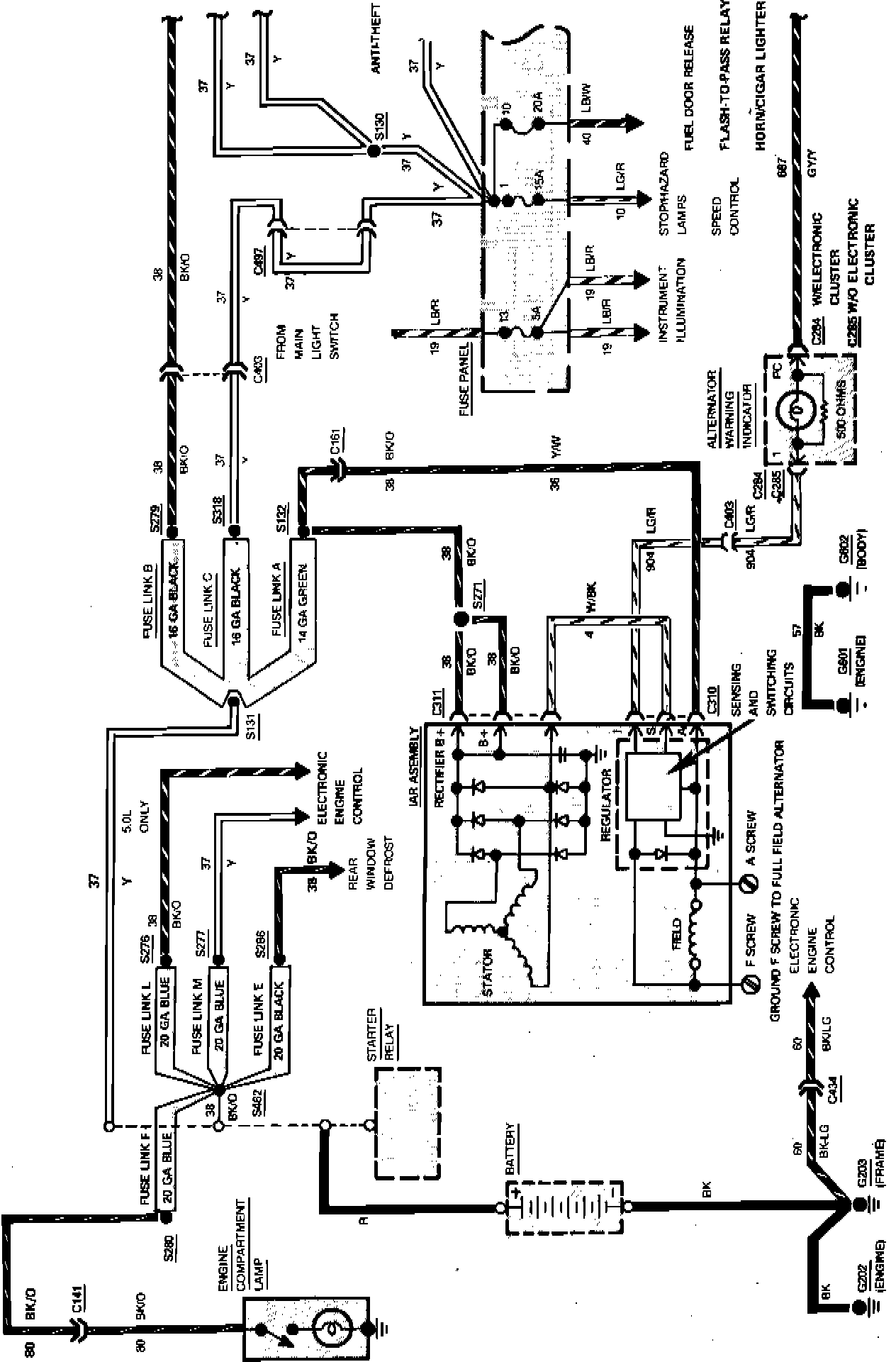 Fig. 15 Charge & Power Distribution Wiring Circuit (Part 2 of 2). V6-230/3.8L Engine: