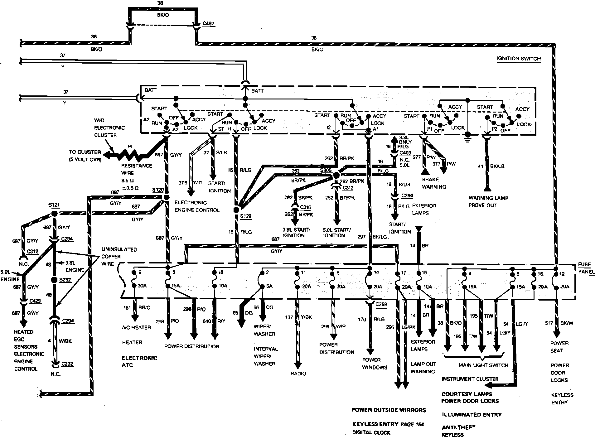 Fig. 15 Charge & Power Distribution Wiring Circuit (Part 1 of 2). V6-230/3.8L Engine: