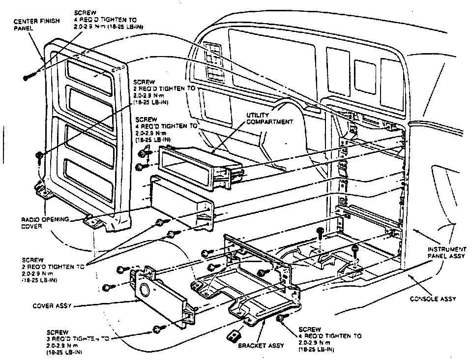 a. Open ashtray receptacle, and remove two outboard screws inside ashtray opening.