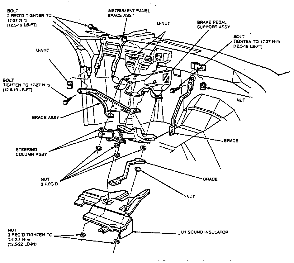Fig. 13 Removing Steering Column Braces, 1985-88 Cougar & Thunderbird.: