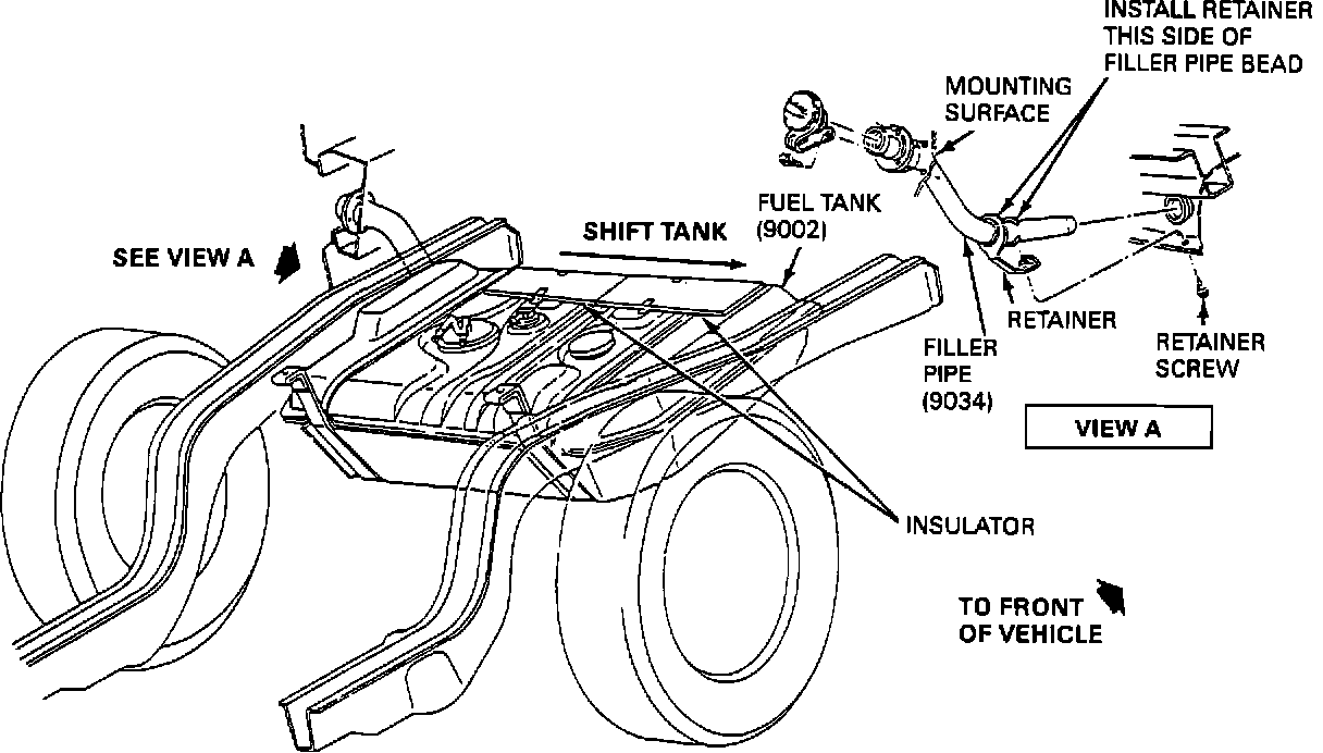 NOTE: MAKE SURE THE GAP BETWEEN THE RETAINER AND THE BEAD ON THE FILLER PIPE IS AS SMALL AS POSSIBLE.