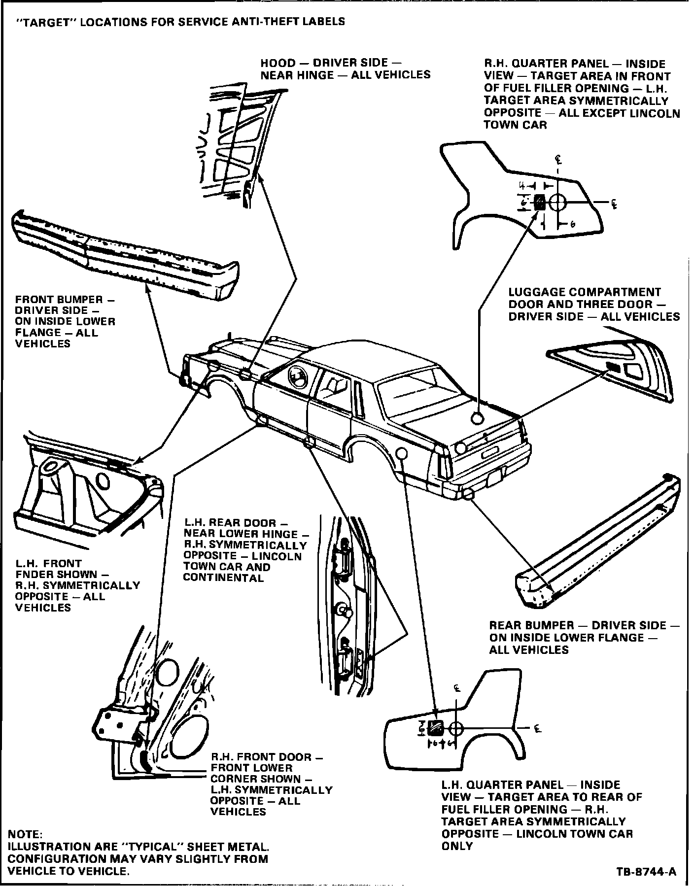 The U.S. Motor Vehicle Theft Law Enforcement Act of 1984 requires identification of certain parts on high theft vehicles to reduce the National Auto Theft Rate. This new federal law requires Ford Motor Company to affix the vehicle identification number (VIN) on specific parts. The affected "body parts" are the bumpers (front and rear); fenders (L.H.and R.H.); hood, front doors (L.H. and R.H.); rear doors (L.H. and R.H.); quarter panels (L.H. and R.H.) and luggage compartment door. In addition, the affected body service replacement parts for the federally mandated identified parts must also be identified as "service" parts.