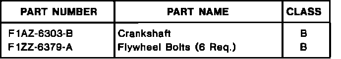WHEN A CRANKSHAFT IS REPLACED DUE TO THRUST BEARING FAILURE, INSTALL A NEW CRANKSHAFT THAT HAS A REVISED PILOT HOLE. THIS WILL PROVIDE ADDITIONAL CLEARANCE FOR THE TOROUE CONVERTER. USE NEW FLYWHEEL BOLTS.