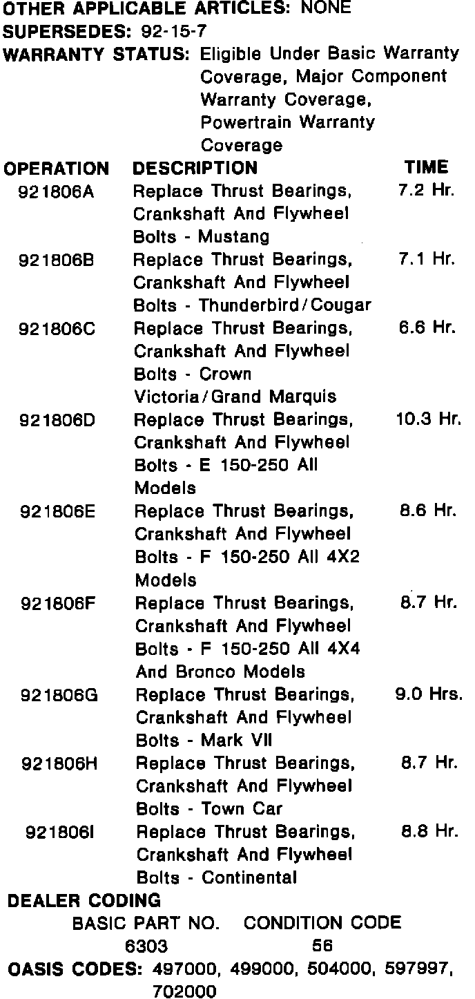^ ENGINE - 5.0L - THRUST BEARING OR CRANKSHAFT PREMATURE WEAR - VEHICLES WITH AOD TRANSMISSION