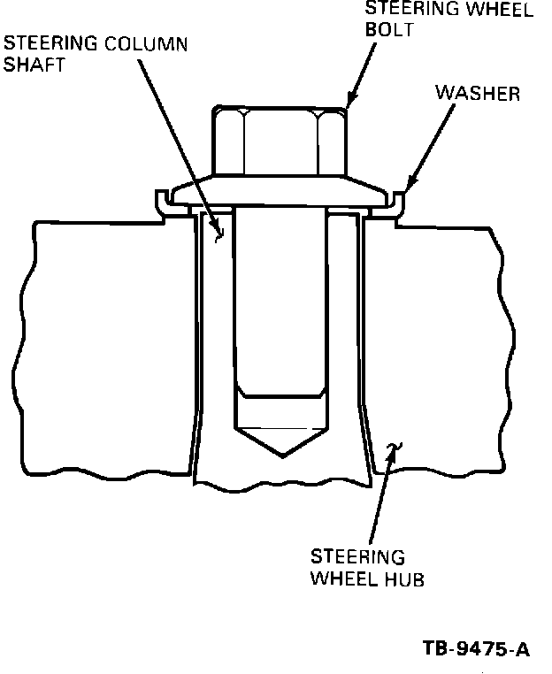 ACTION: To correct this, install a new design steering wheel bolt and a new design washer to shim the steering wheel hub. Refer to the following service procedure.