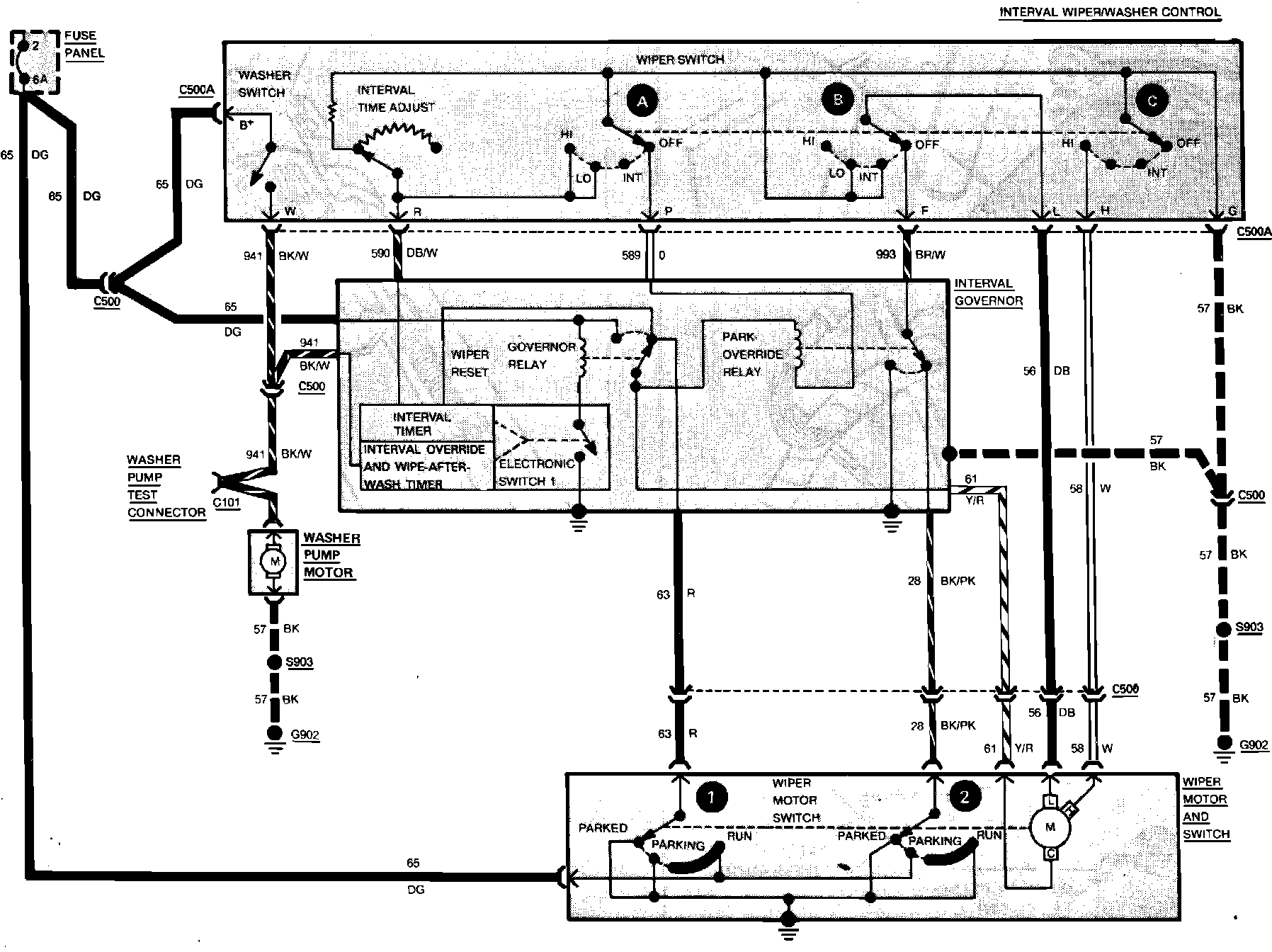 Fig. 83 Windshield Wiper & Washer Wiring Circuit. With Interval: