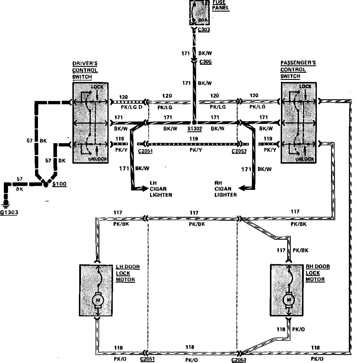 Fig. 46 Power Door Lock Wiring Circuit. 2 Door Models: