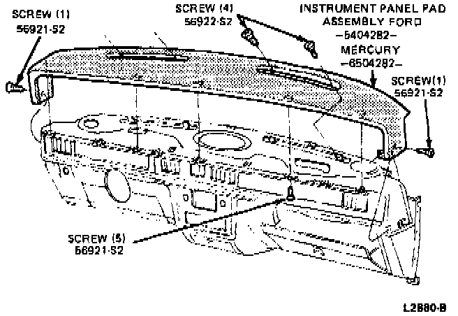 2. Loosen RH trim panel attaching screws and slide moulded seal off of brow of instrument panel.