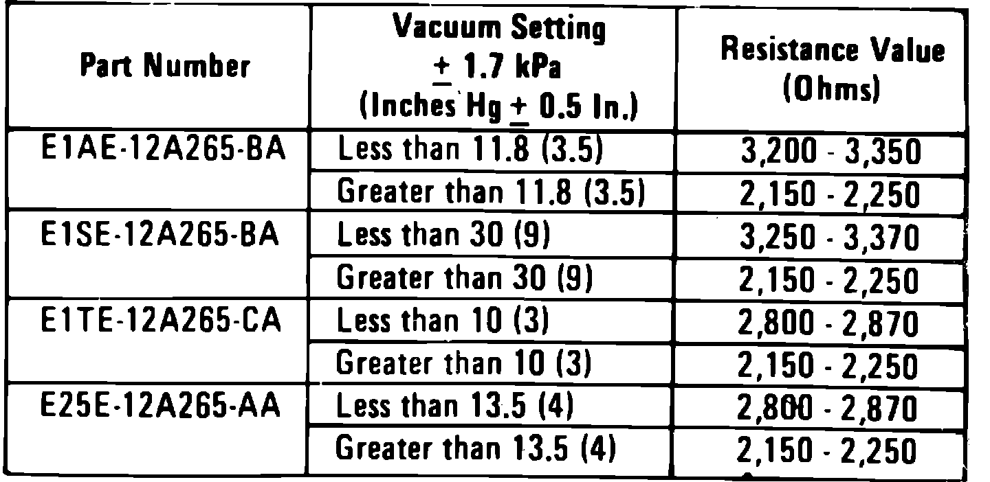3. Apply vacuum to switch, using an outside vacuum source. Compare resistance now measured across switch terminals to ``greater than'' values in the Ignition Timing vacuum Switch Test chart.