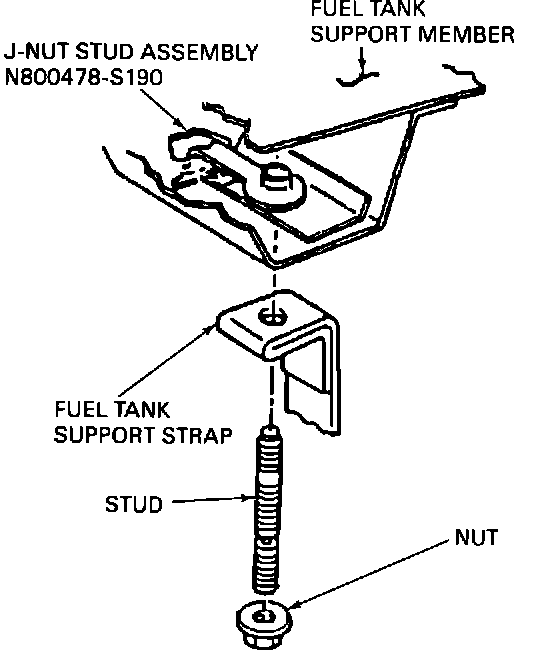 NOTE: USE NEW STUD AND NUT ASSEMBLIES N801111-S190 TO INSTALL THE FUEL TANK ON LINCOLN TOWN CARS. USE NEW STUDS N801070-S190 AND NUTS N800627-S190 TO INSTALL THE FUEL TANK ON CROWN VICTORIA AND GRAND MARQUIS UNITS. THIS ATTACHING HARDWARE IS INCLUDED IN THE FUEL TANK ISOLATOR KIT.