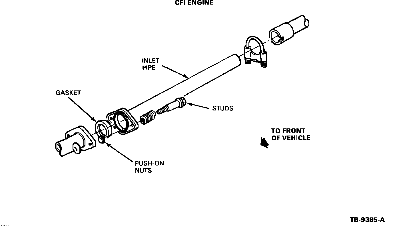 1. Loosen the two (2) studs attaching the catalytic converter to the inlet pipe (CFI engine) or dualpiped manifold (EFI engine) until just 3 or 4 threads remain inside the nuts, Figures 8 and 9.