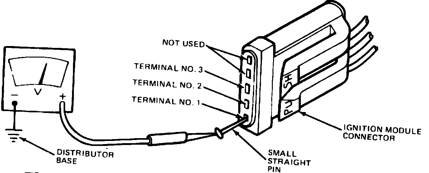 3. Connect the negative lead of a suitable voltmeter to distributor base. Connect positive lead to a straight pin to serve as a probe.