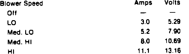 Fig. 35 Blower motor current draw & voltage test chart.: