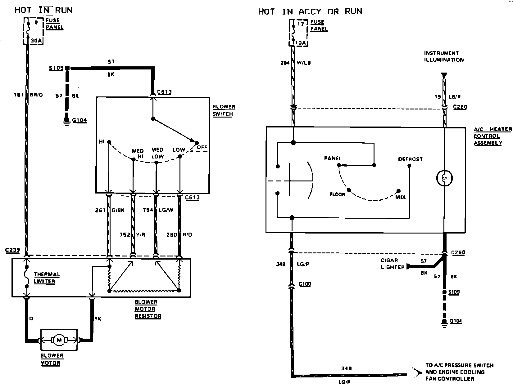 Fig. 2 Air Conditioning & Heater Control Wiring Circuit: