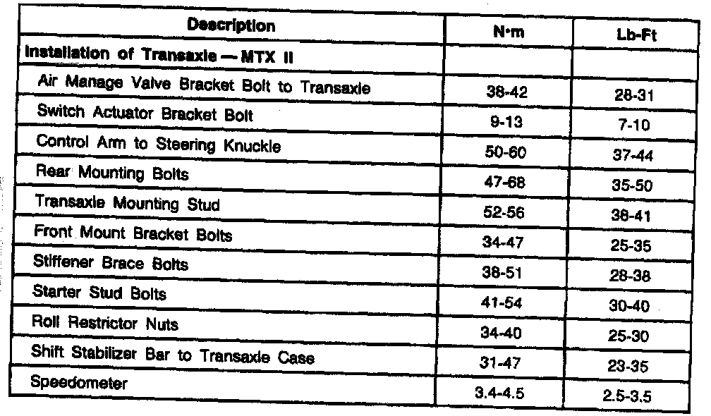 MTX II 4-spd M/T, Installation Of Transaxle: