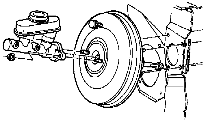 2. Before installing the master cylinder, check the distance from the outer end of the booster assembly push rod to the face of the brake booster assembly.