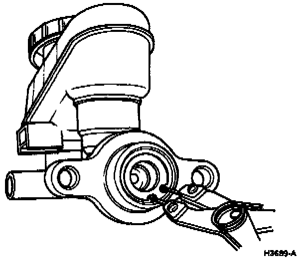 b. Remove primary reservoir port from master cylinder by prying upward with rod or long screwdriver.