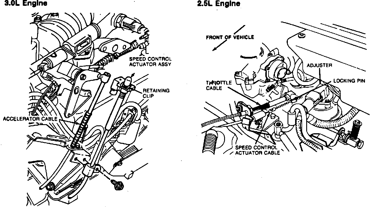 2. Disconnect speed control actuator cable with adjuster from accelerator cable.