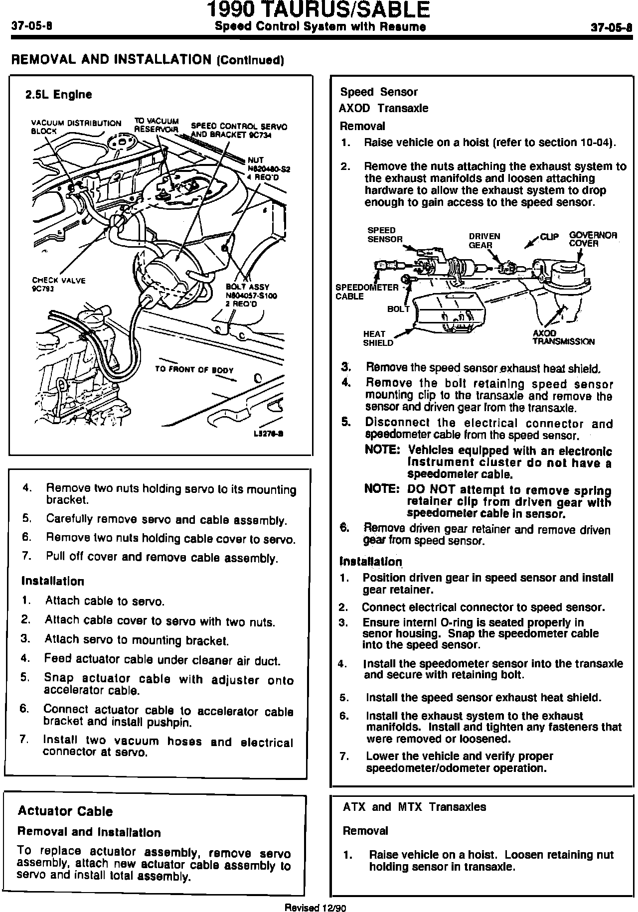Speed Sensor - Service Procedures Revision