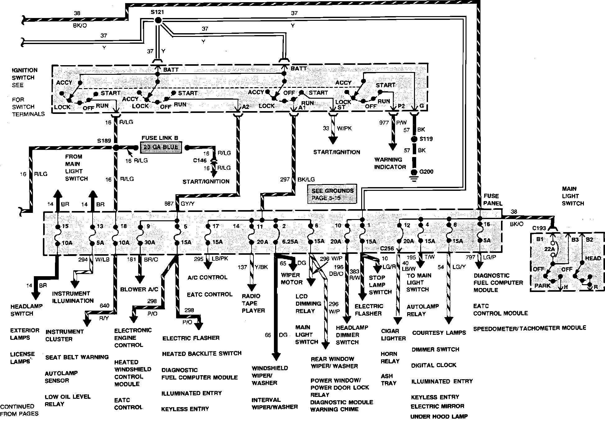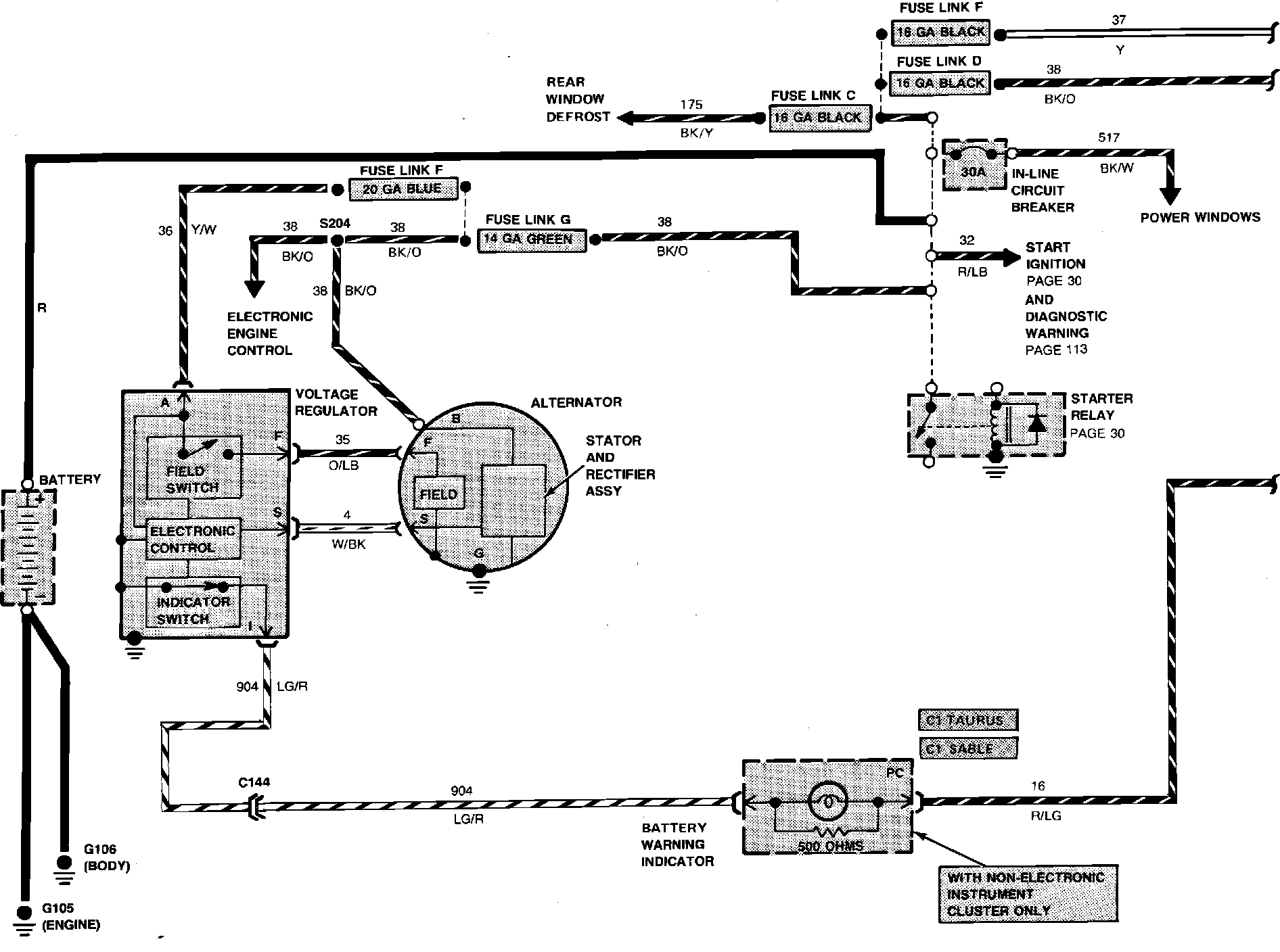 Charge/Power Distribution Wiring Circuit (Part 1 of 2). V6-182/3.0L Engine Less Heated Windshield: