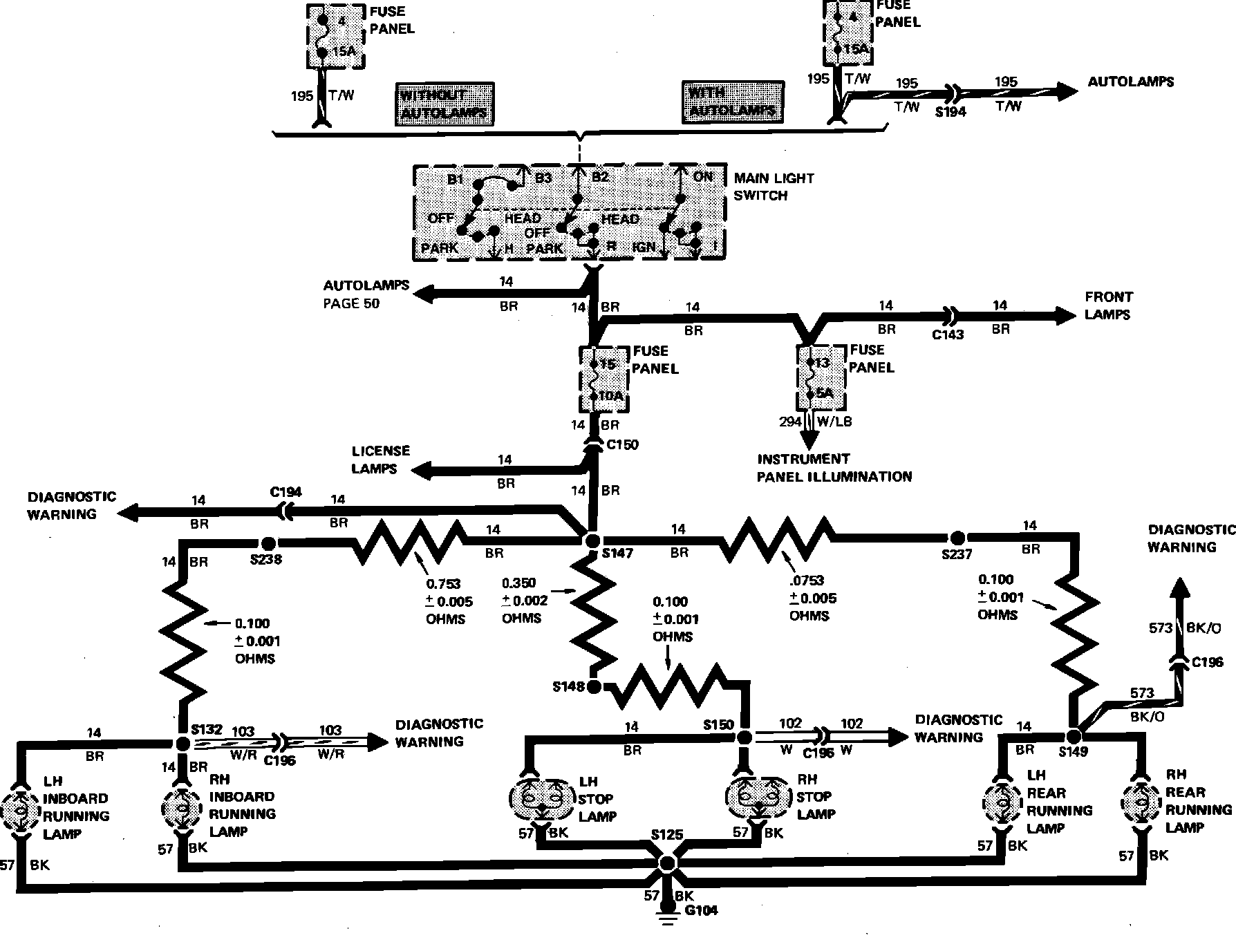 Fig. 18 Exterior Lamps Wiring Circuit. Sable w/Diagnostic Warning: