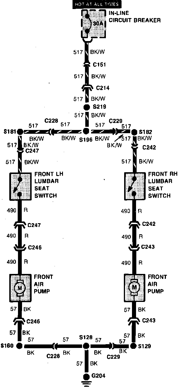 Fig. 67 Power Lumbar Seats Wiring Circuit: