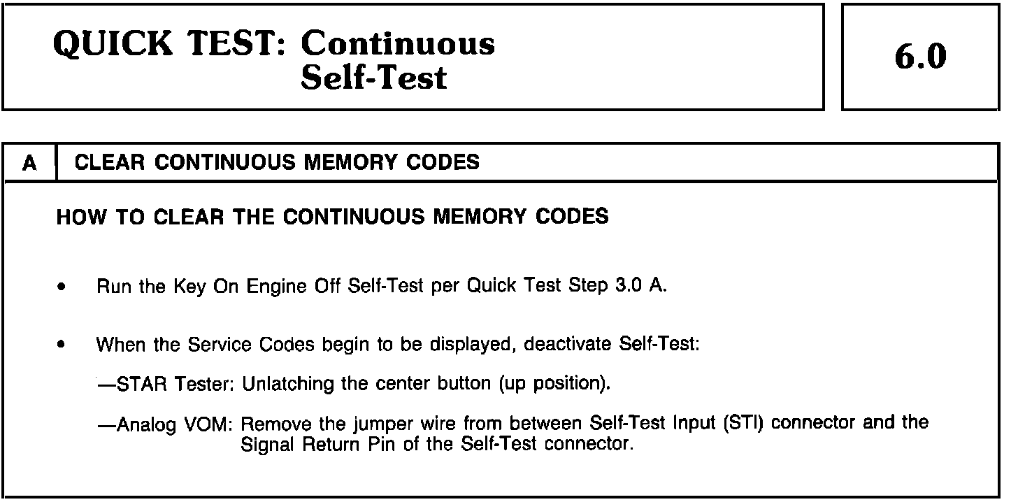 Clearing Continuous Memory Codes:Quick Test 6.0A - Clearing Continuous Memory Codes: