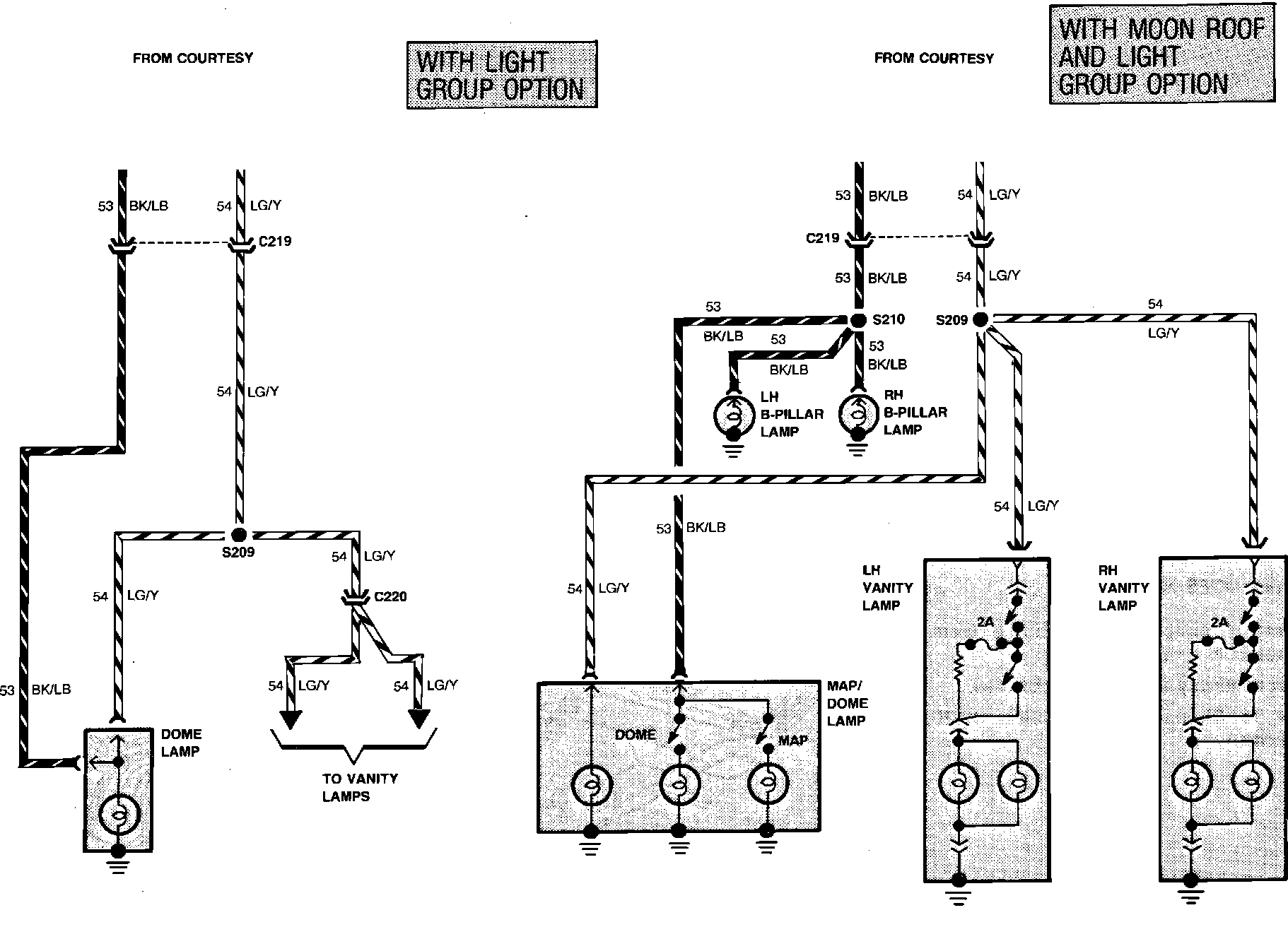 Fig. 11 Courtesy Lamps Wiring Circuit. With Light Group Option:
