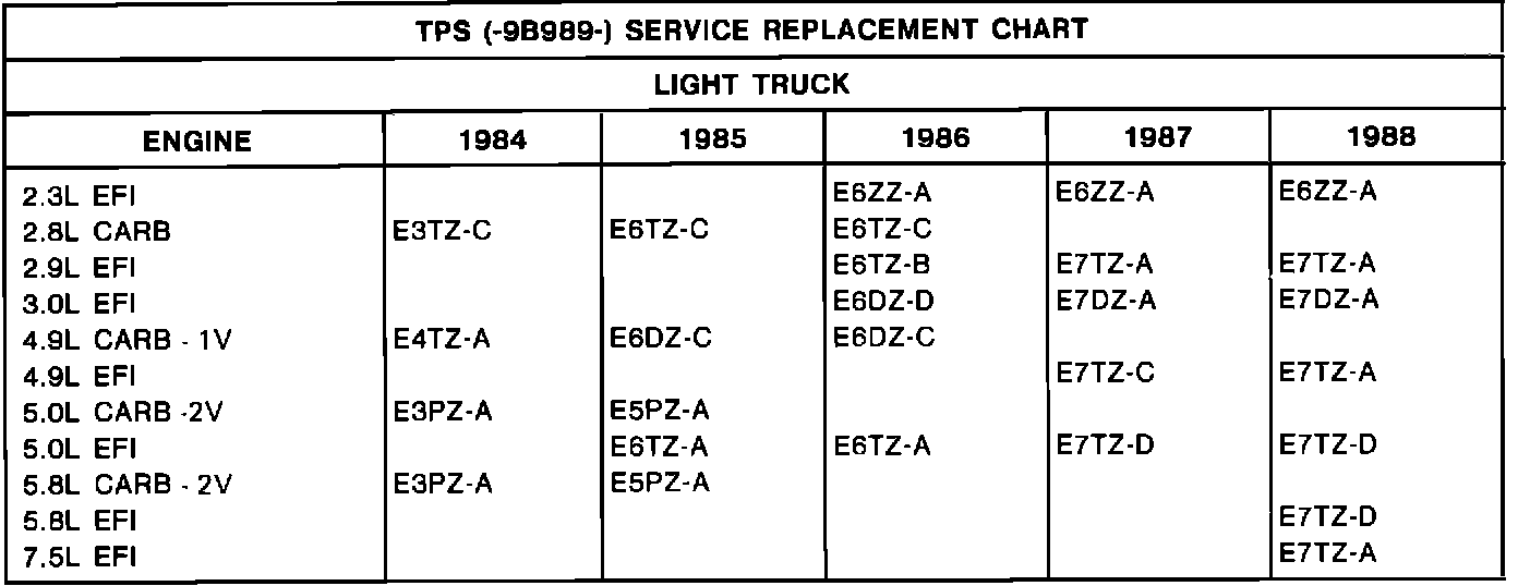 TPS (-9B989-) SERVICE REPLACEMENT CHART