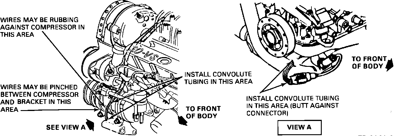 NOTE: If wires have convolute tubing completely covering them and are not pinched between the air conditioning compressor and support bracket, further inspection is not required. Perform normal diagnostic procedure.