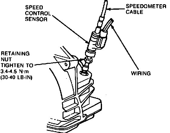4. Disconnect speedometer cable by pulling it out of speed sensor. Do not attempt to remove spring retaining clip with speedometer cable in sensor.