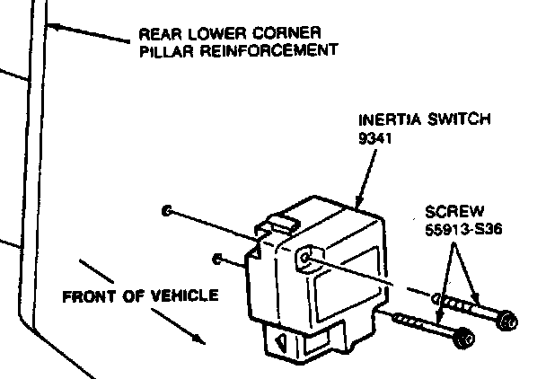 The inertia fuel shutoff switch is located on the right hand rear lower corner pillar reinforcement behind a storage compartment door (31560).