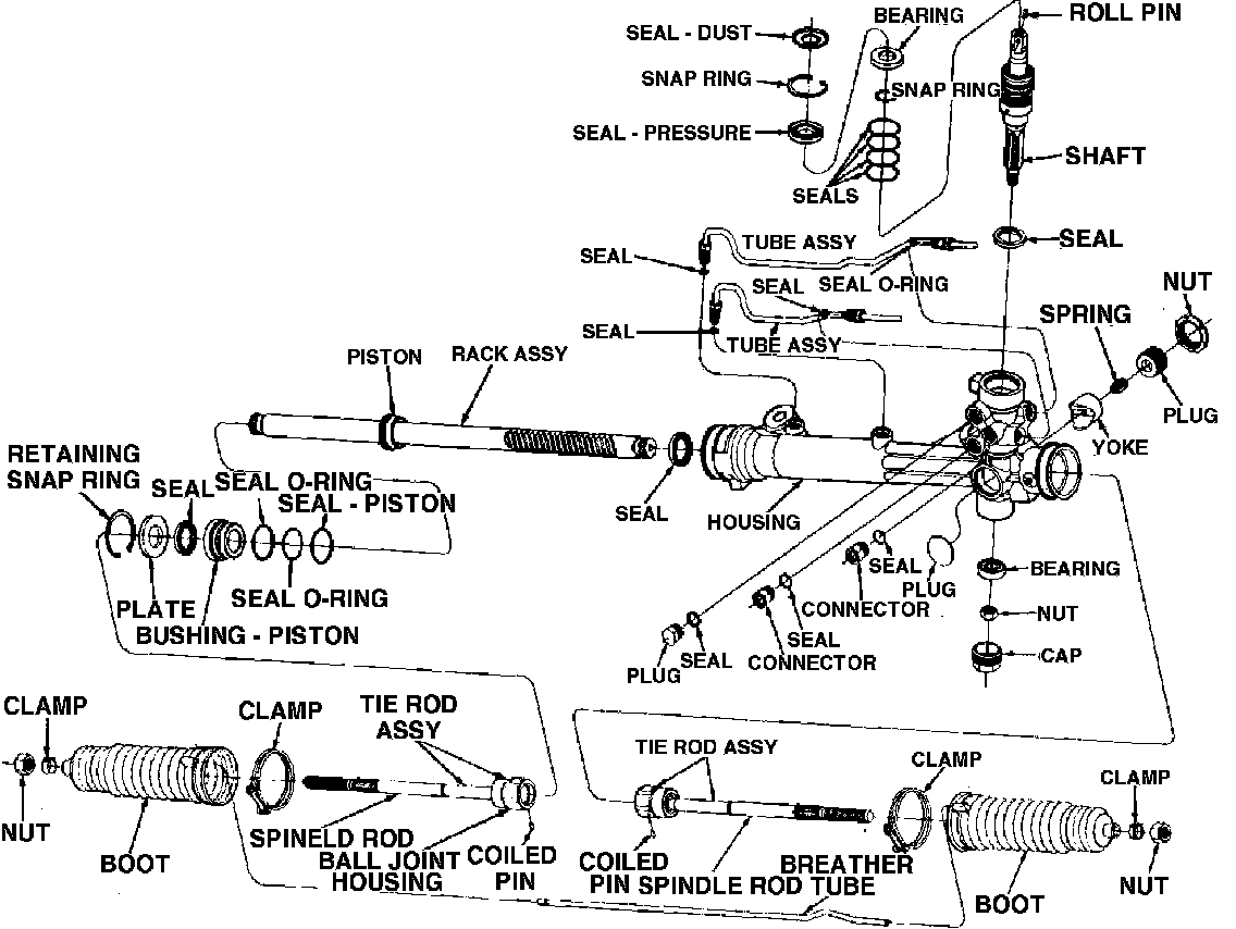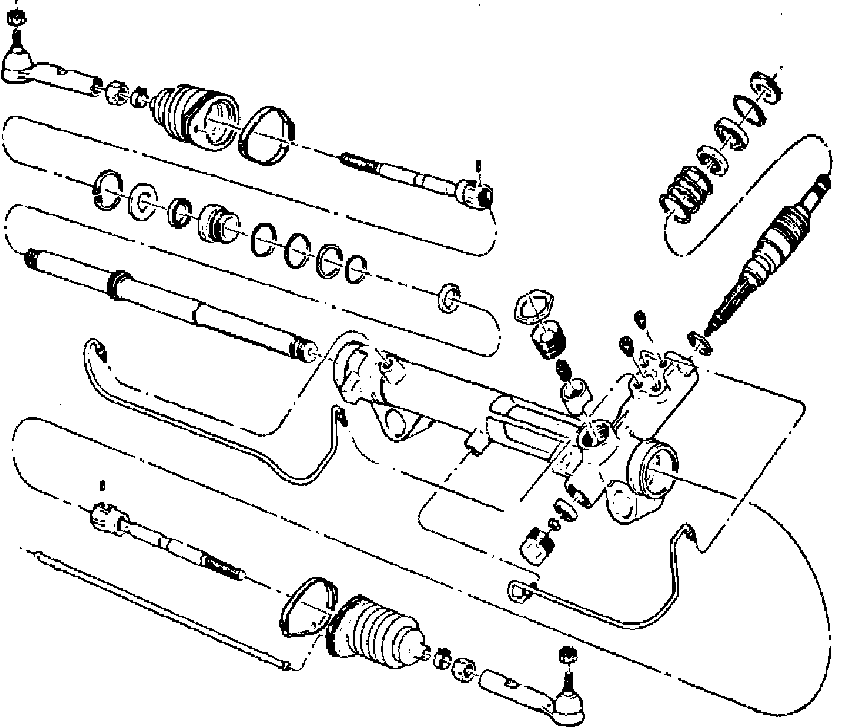 Fig. 1B Steering gear disassembled. Exc.Taurus, Sable & 1987 Tempo, Topaz, Escort Lynx & EXP:
