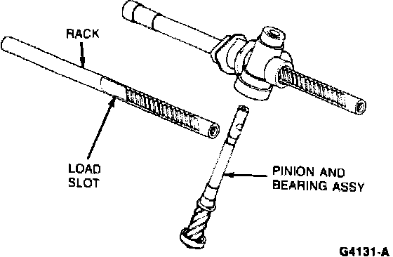 9. Install rack into housing from left end (pinion end) and center load slot in pinion bore.