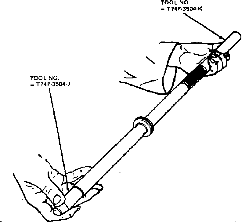 8. Position small diameter end of tool No. T78P-3504-M, or equivalent, into righthand side opening of gear housing.