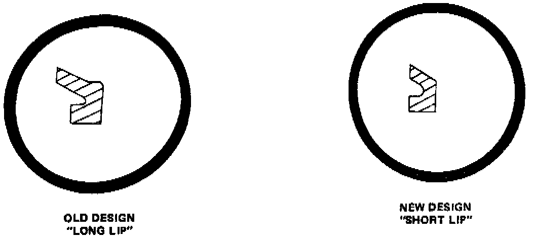 The new seals can be identified by the short lip as compared to the old long lip.