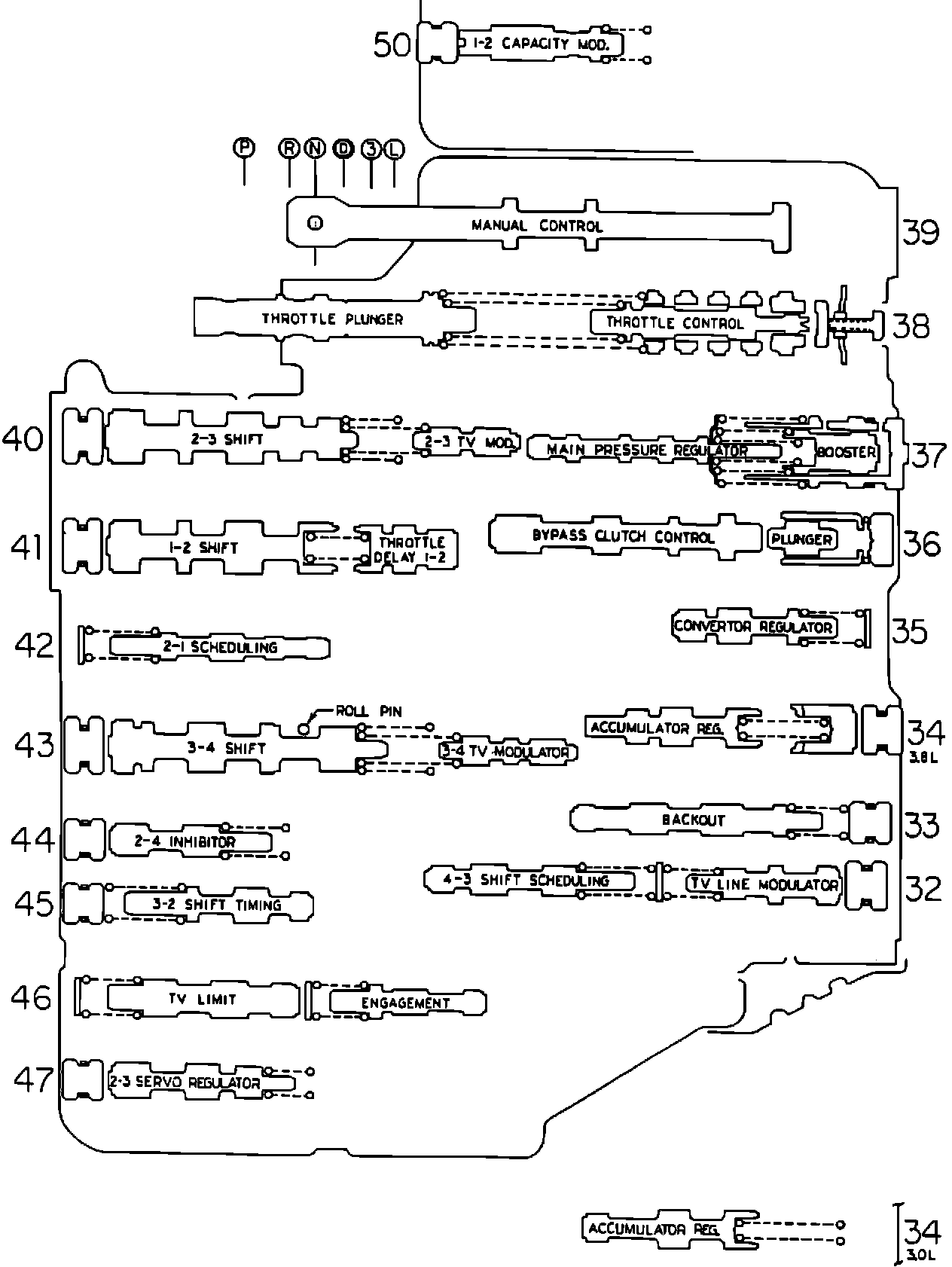AXOD MAIN CONTROLVALVE AND BORE IDENTIFICATION: