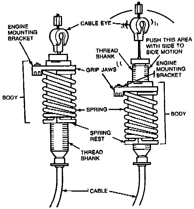 2. Rotate throttle lever to wide open throttle position and release. Note: threaded shank must show movement, or "ratchet" out of grip jaws.