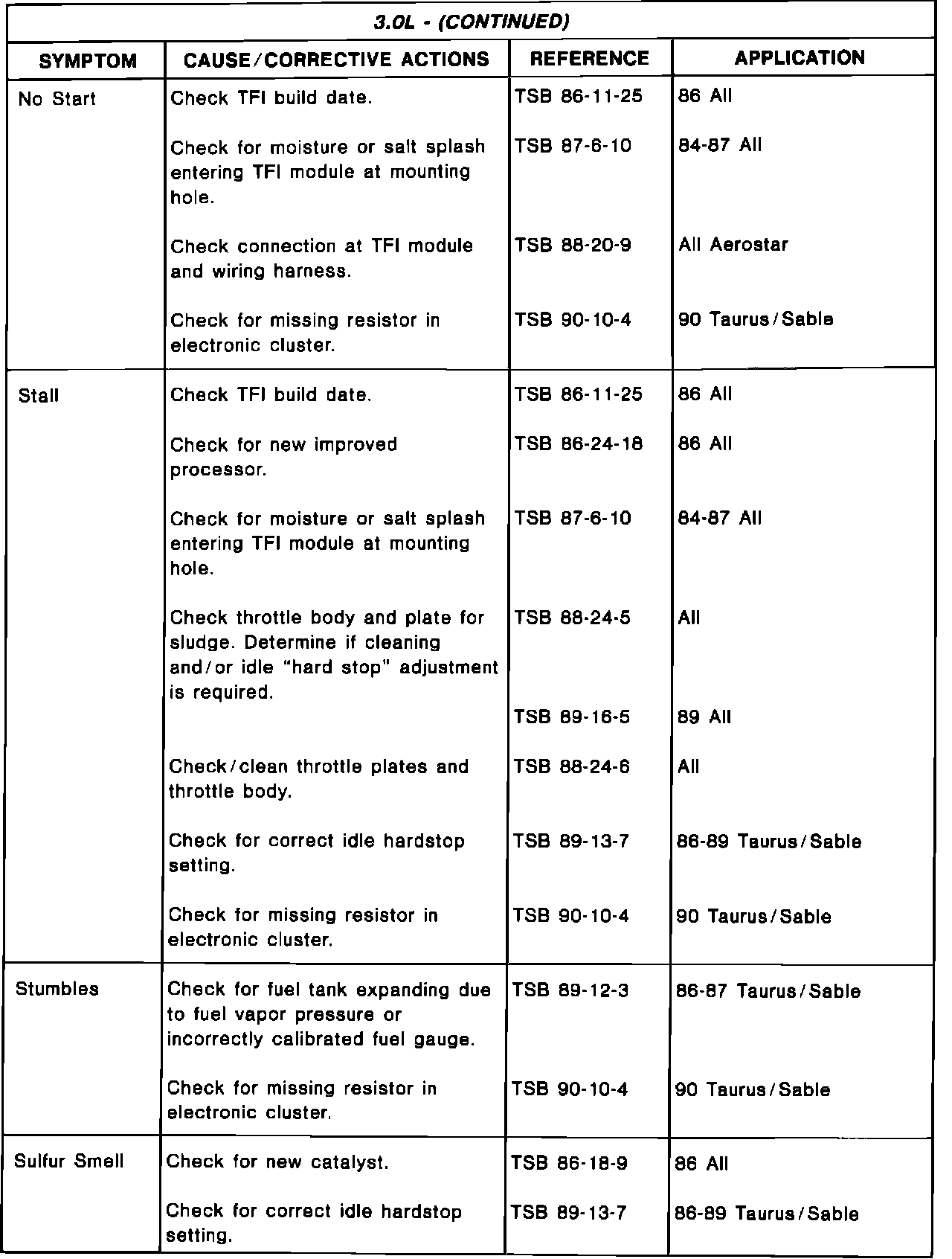 Driveability TSB's - Summary