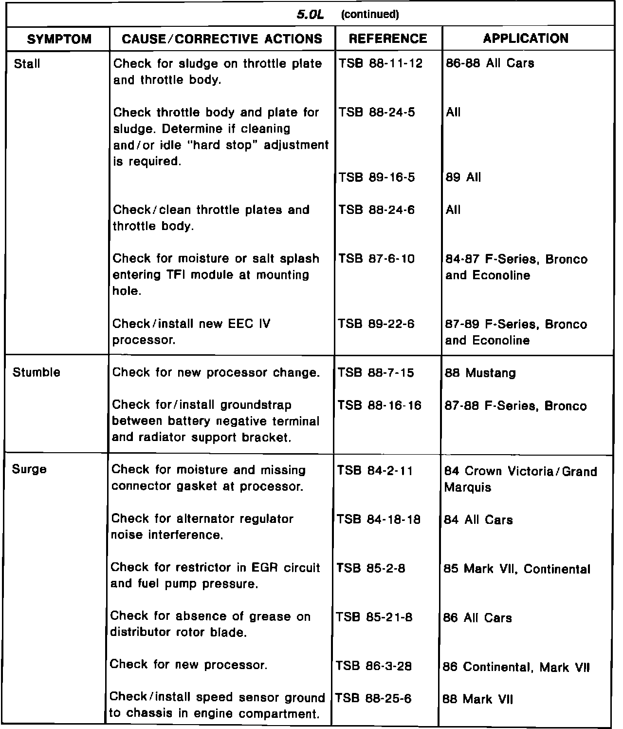 Driveability TSB's - Summary
