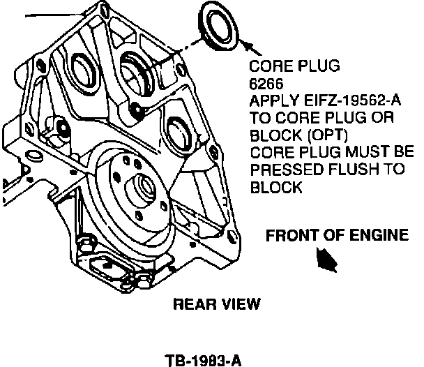 b. Apply a light coating of anaerobic sealer (E1FZ-19562-A) on the sealing edge of the plug before installation.