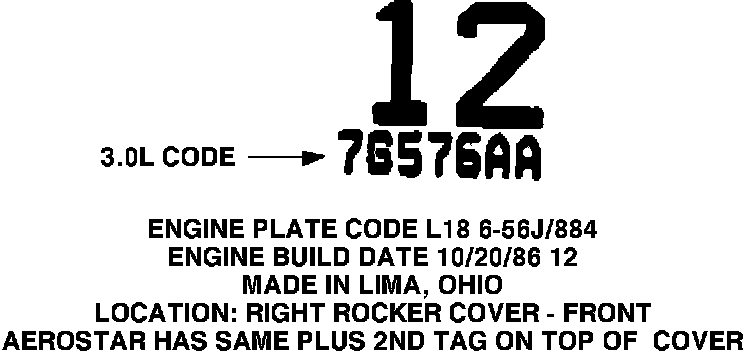 ^ Engine code, calibration and engine build date from the engine label located at the front of the right rocker cover.