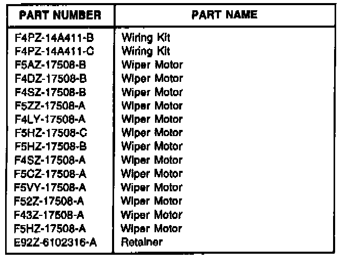 1. Inspect the vehicle to see if the new Wiper Motor (-17508-) is already installed. If so, the latest level of wiring is already installed and the Wiper Motor Wiring Kit (-14A411-) is not required.