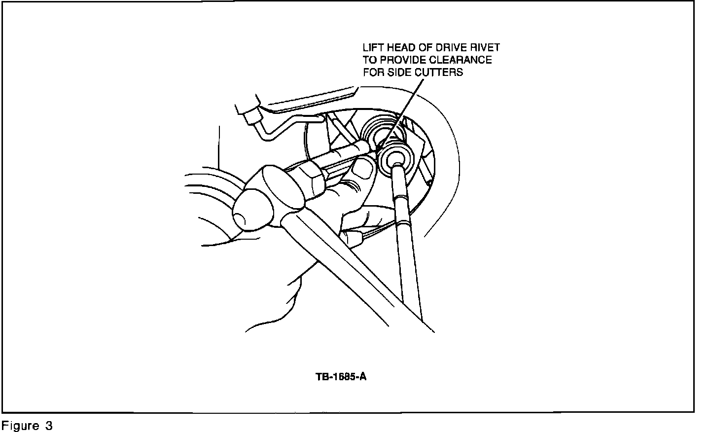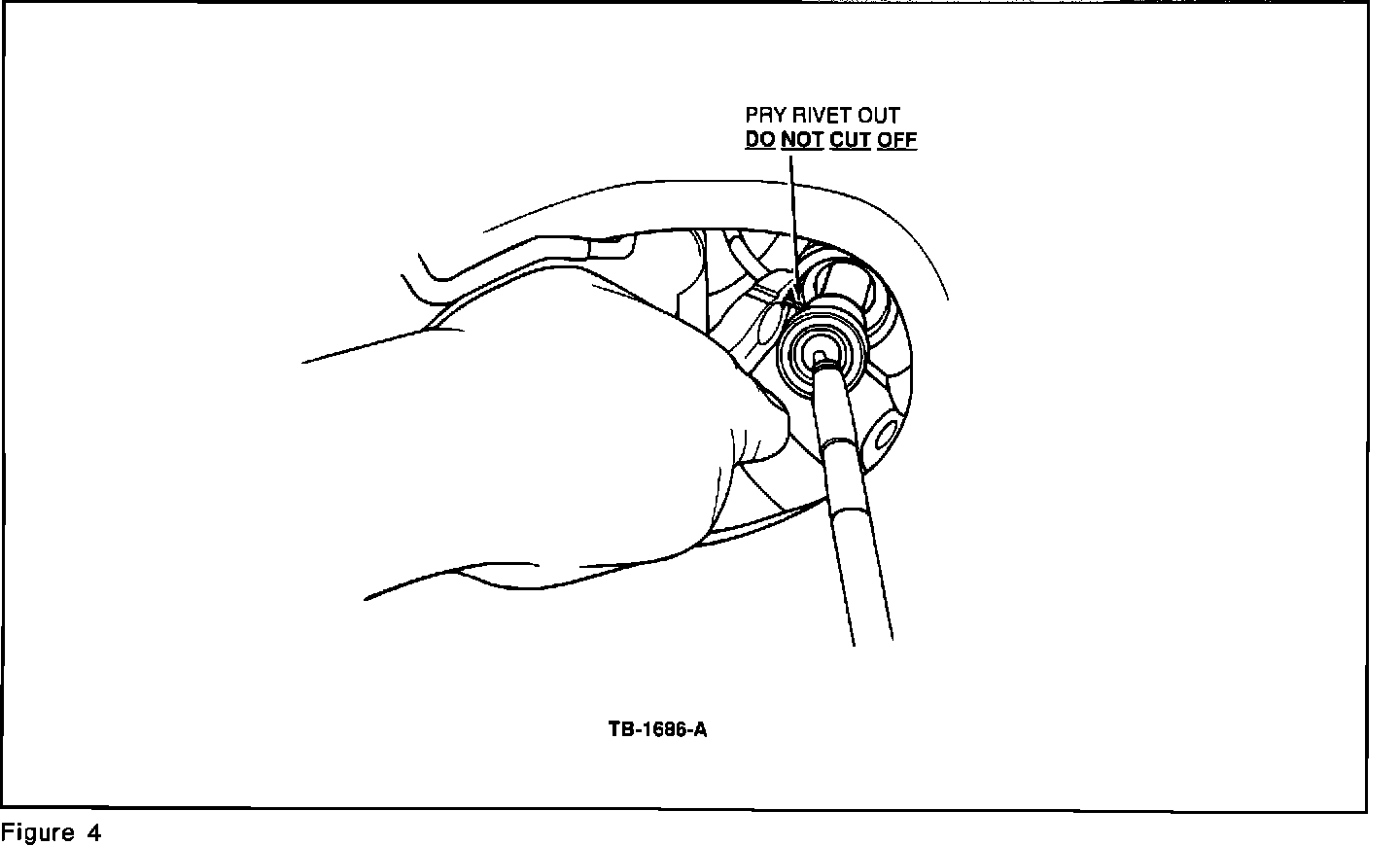 b. Use side cutters or equivalent to remove the rivet, Figures 3 & 4.