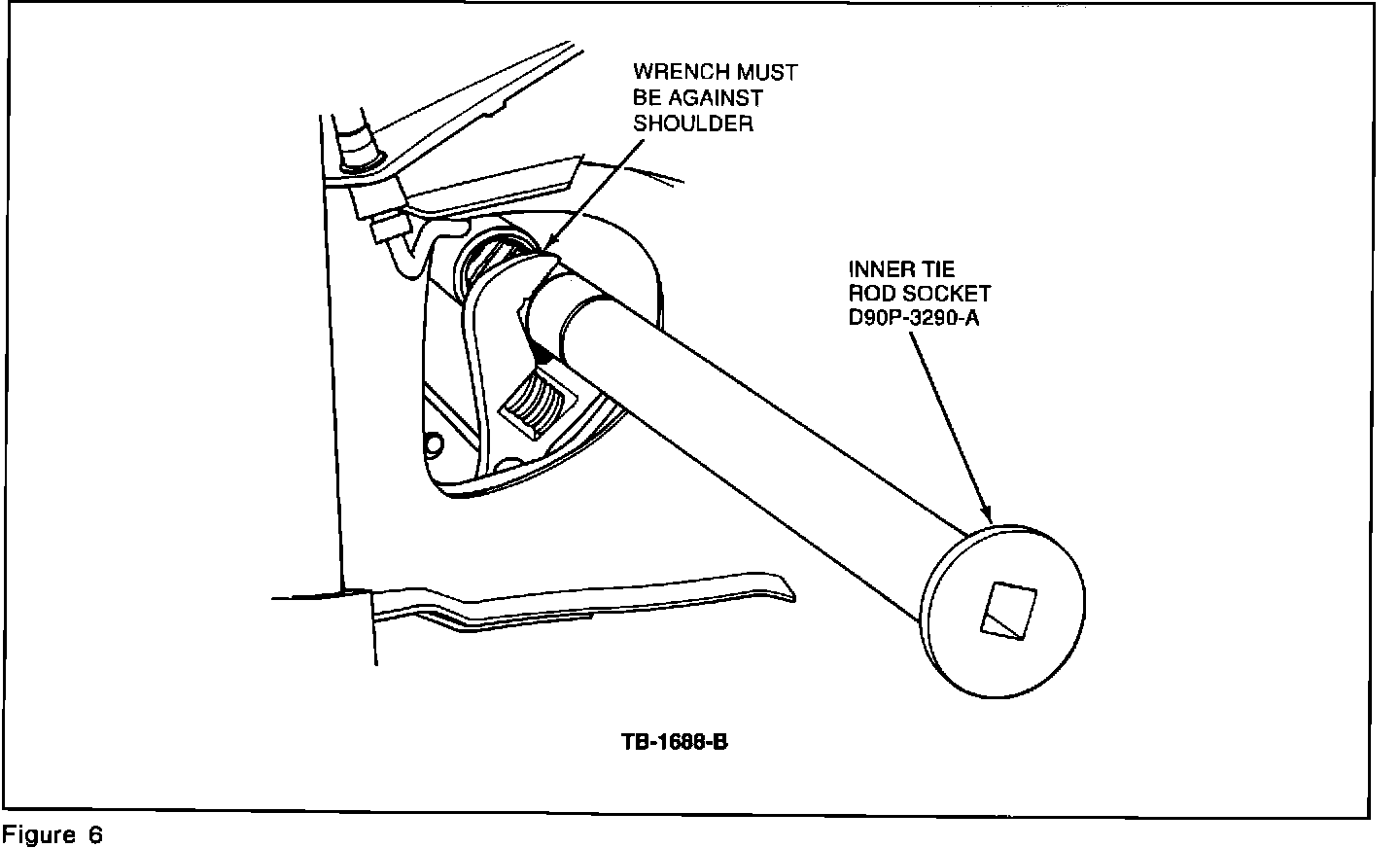 6. Remove the inner tie rod from the steering gear rack using a wrench on the rack teeth in combination with the following tools as shown in Figures 6 and 7.