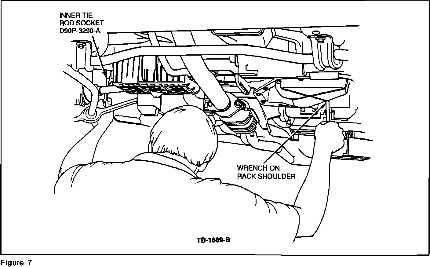 4. Hold the rack securely as shown in Figure 7. If both inner tie rods are replaced, tighten each inner tie rod separately.