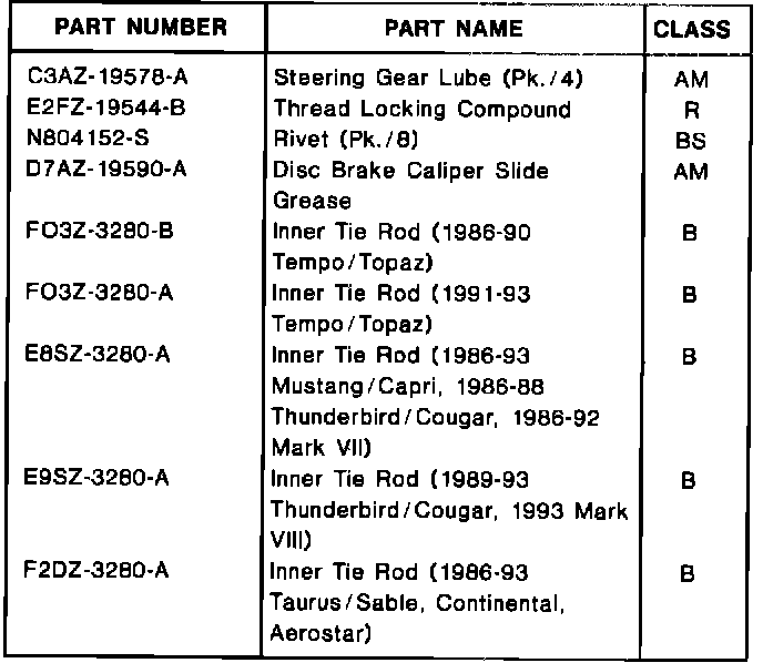 ^ Nut Wrench T74P-3504-U - Aerostar, Thunderbird, Cougar, Continental, Mark VII & Mark VIII, Mustang, Taurus and Sable An adjustable wrench may be used on the rack teeth.